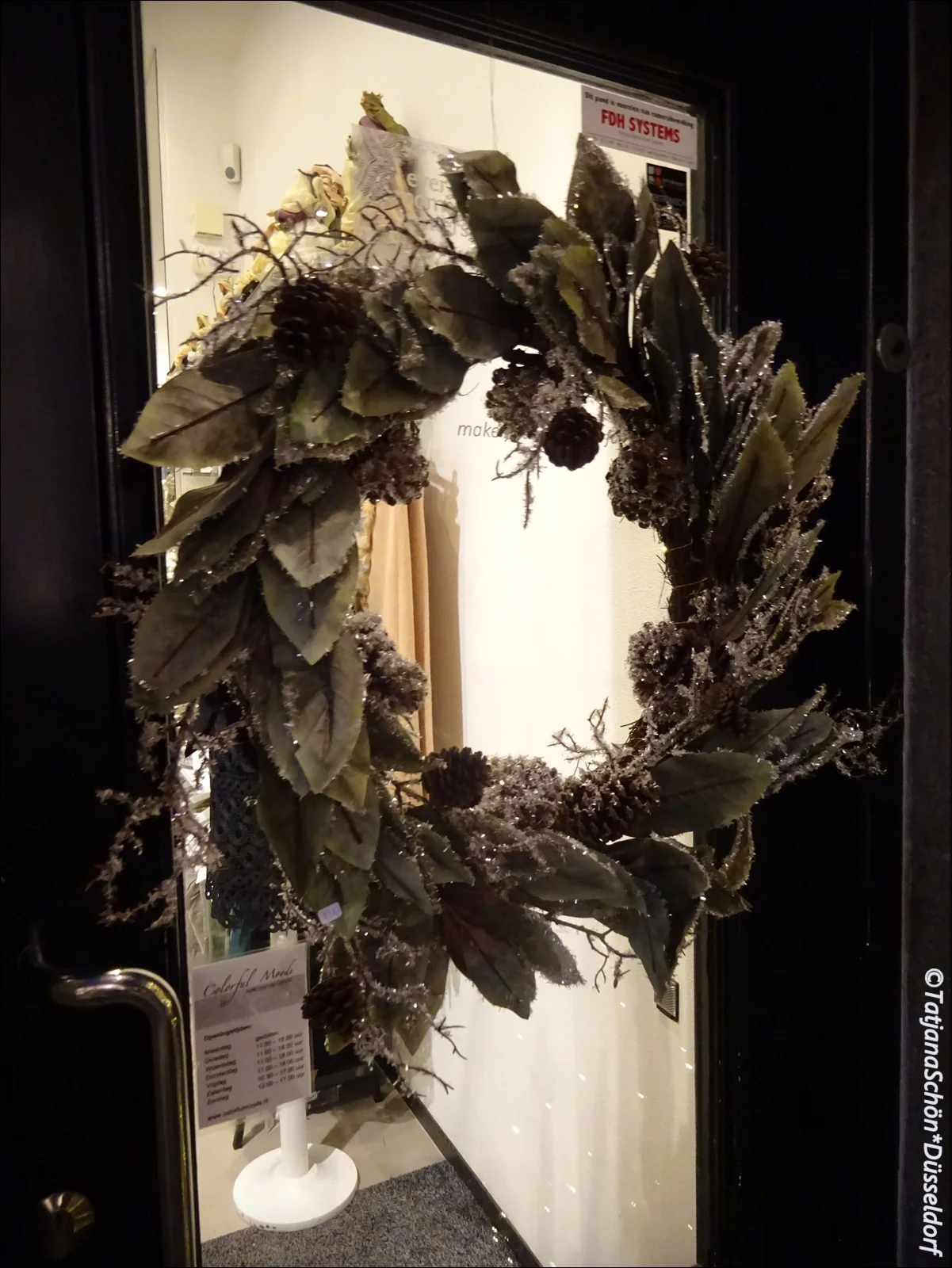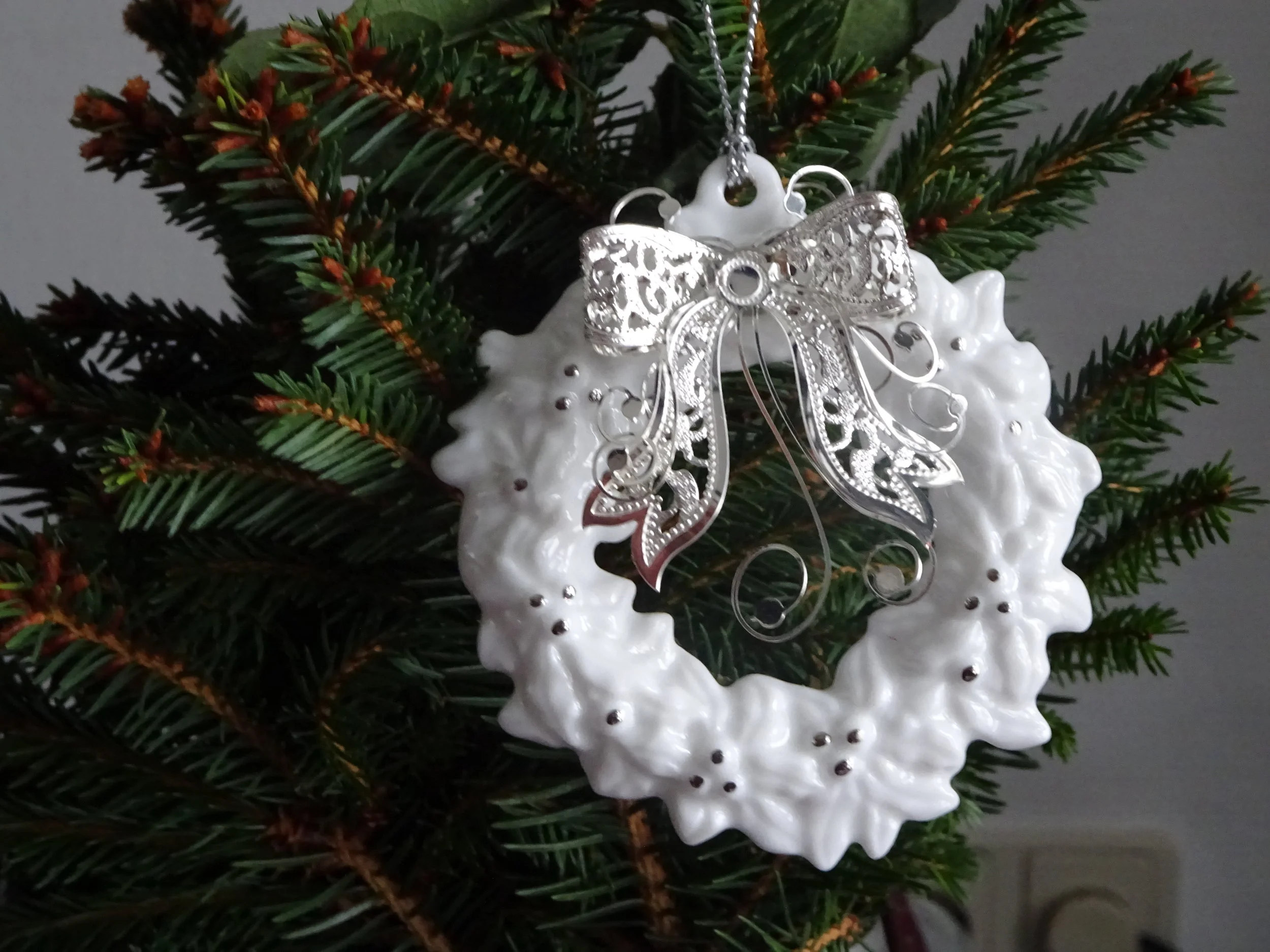 Купила 4 новых шарика (на распродаже в Дюссельдорфе) на ёлку и вот такой фарфоровый венок (на распродаже в Кевеларе).