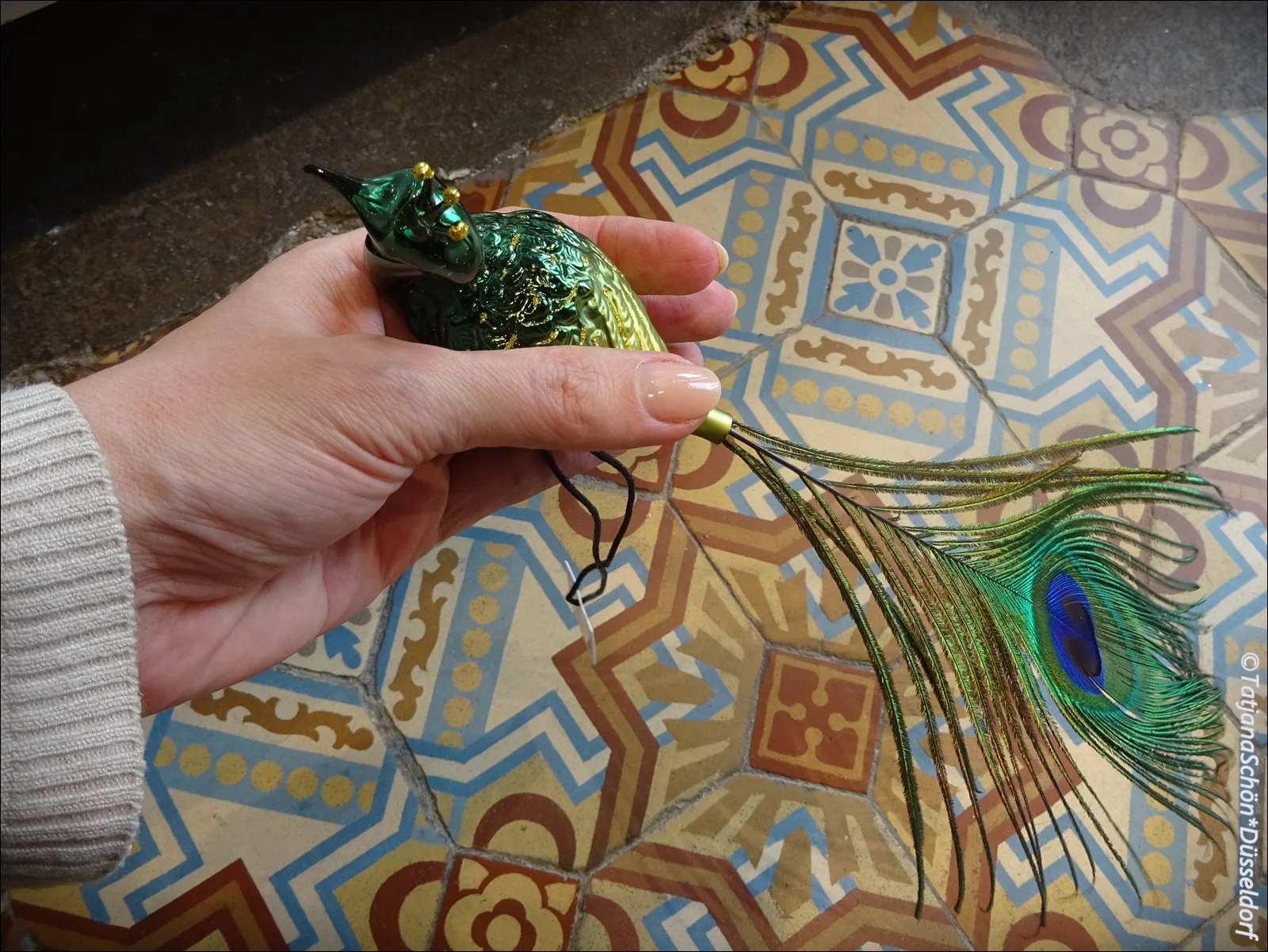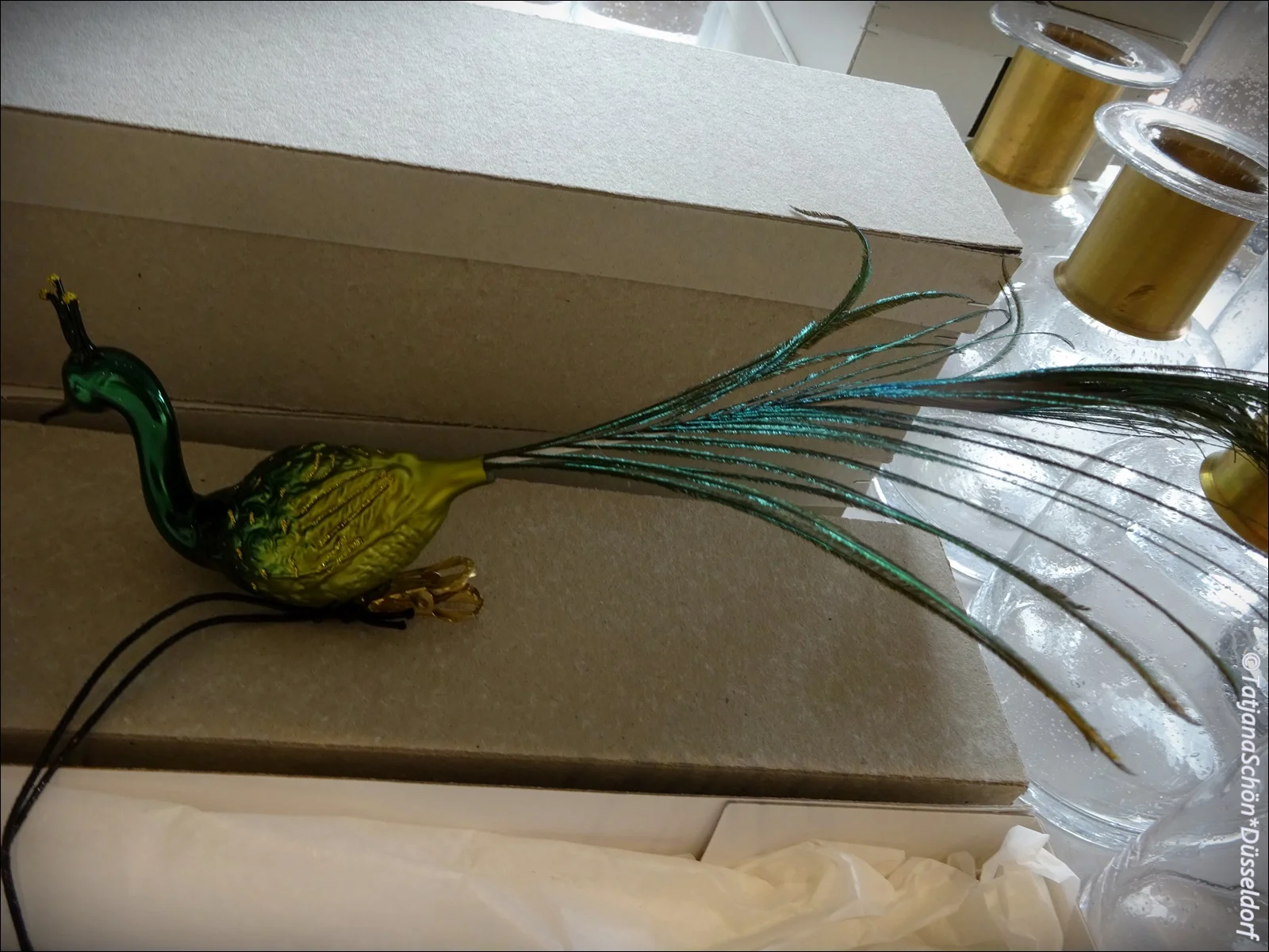 Вот ещё один павлин, но мы его отвергли из-за недостаточно аккуратного соединения стекло-перо.