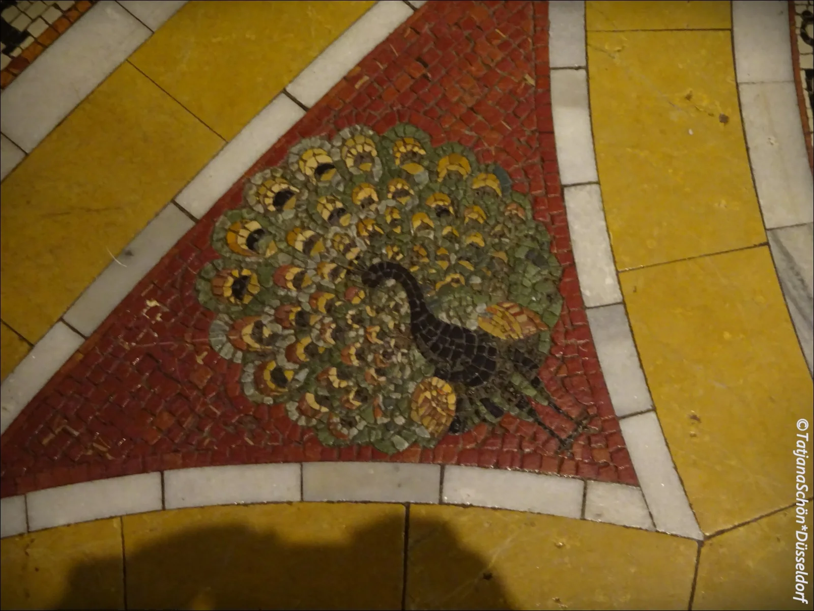 Зашли в церковь к концу службы. Полюбовались оформлением этой церкви: Ангел, дракон семиглавый, павлин мозаичный и павлин "на обоях".