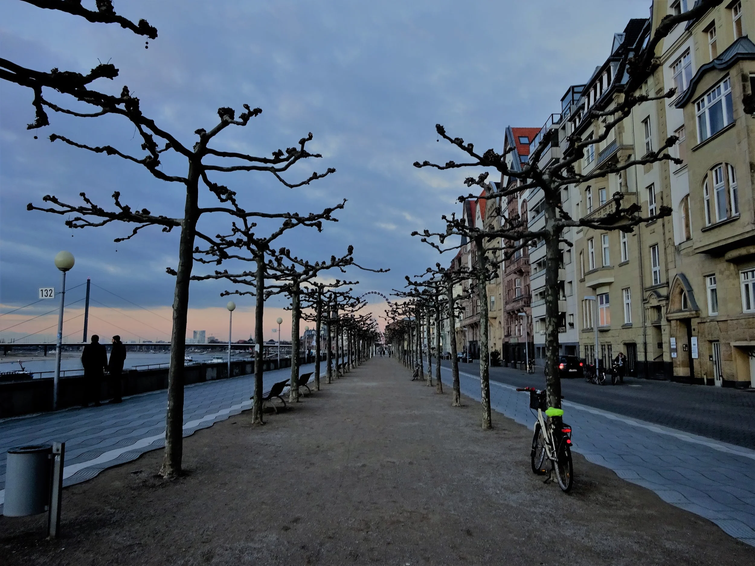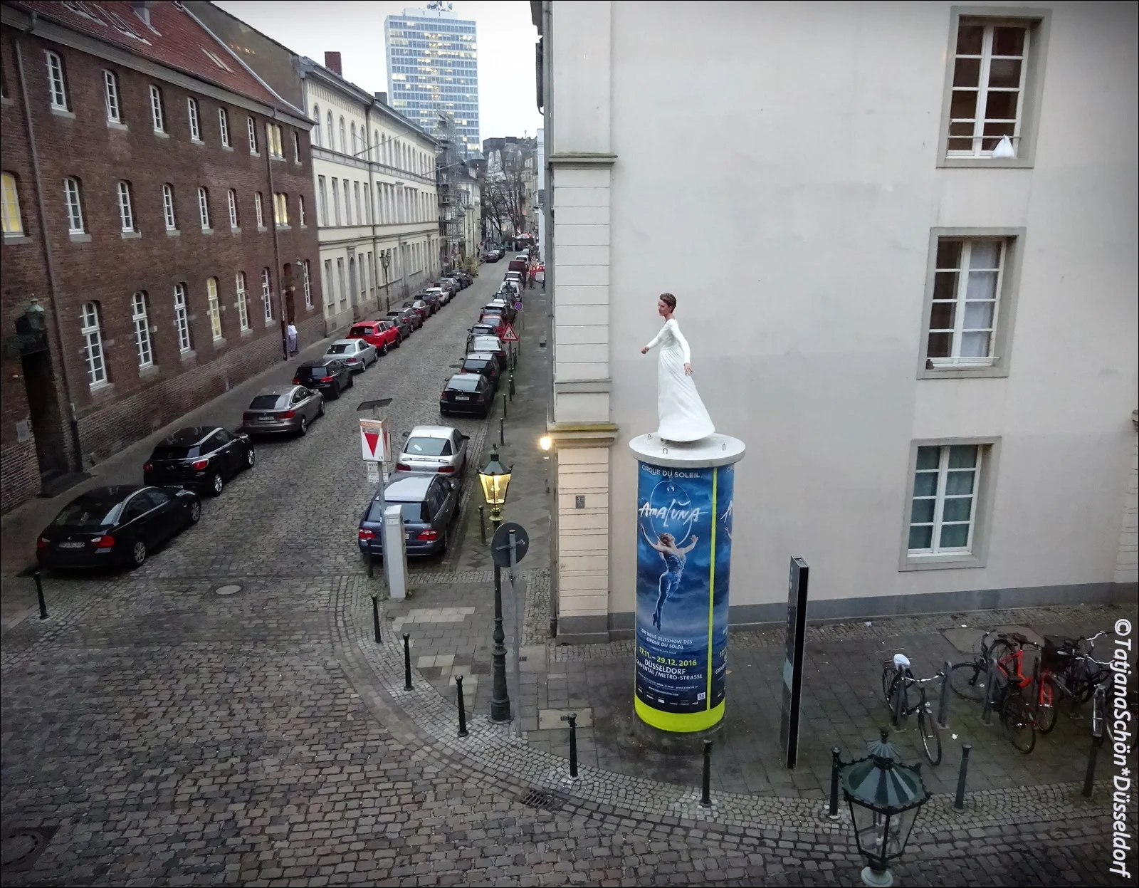 К счастью, уже совсем перед Рождеством приехали милейшие экскурсанты (наиприятнейшая молодая семья с девочкой-подростком) и я им, влюблённым в Дюссельдорф, показывала, как тут запросто можно припарковать велосипед к телебашне (у которой антенна набекрень)).