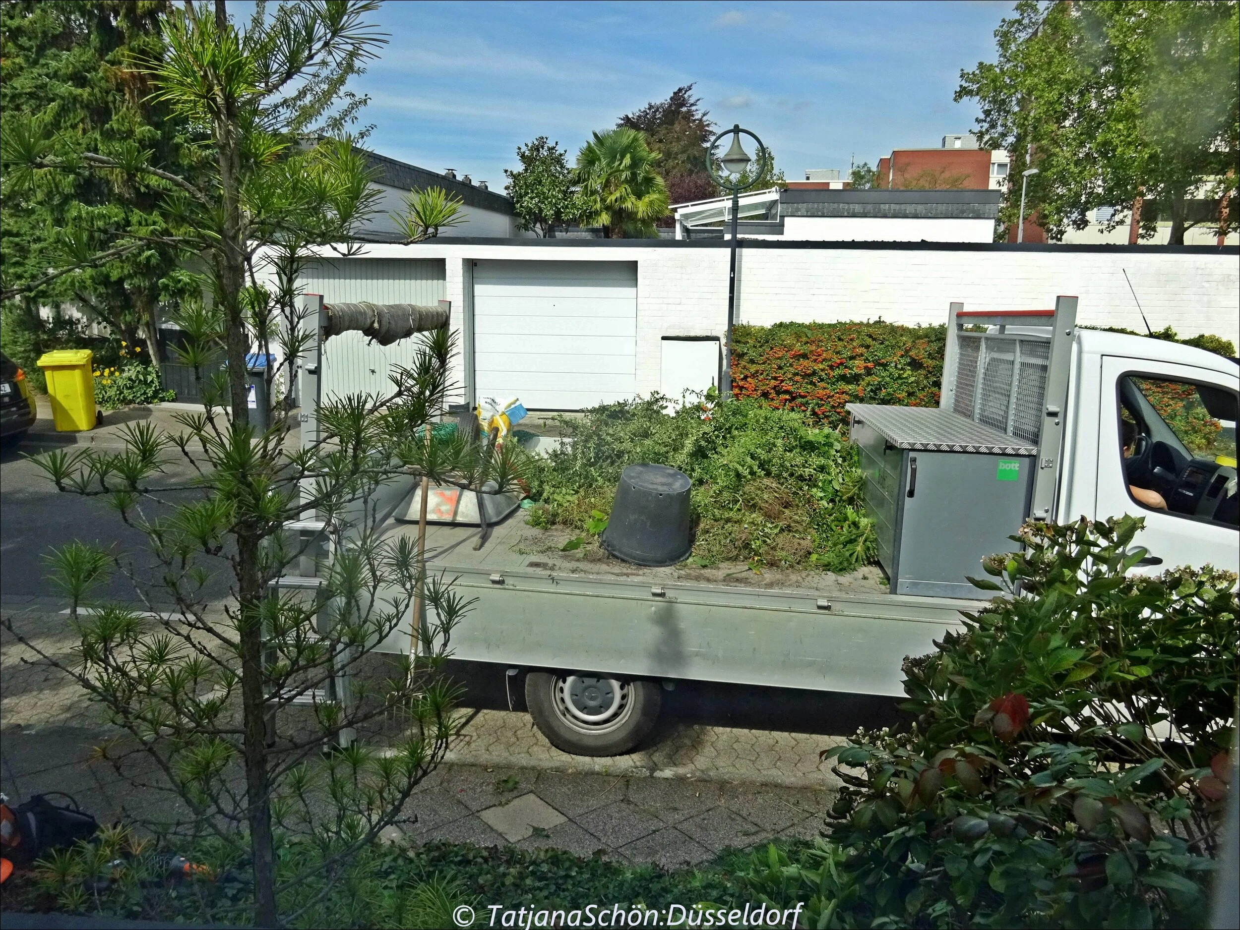 А садовница подстригла наши деревья и кустарник напротив дома (треть его принадлежит нам и если куст вывешивается на тротуар, нам муниципалитет шлёт требования о наведении порядка - вот уж: ёлки-палки)