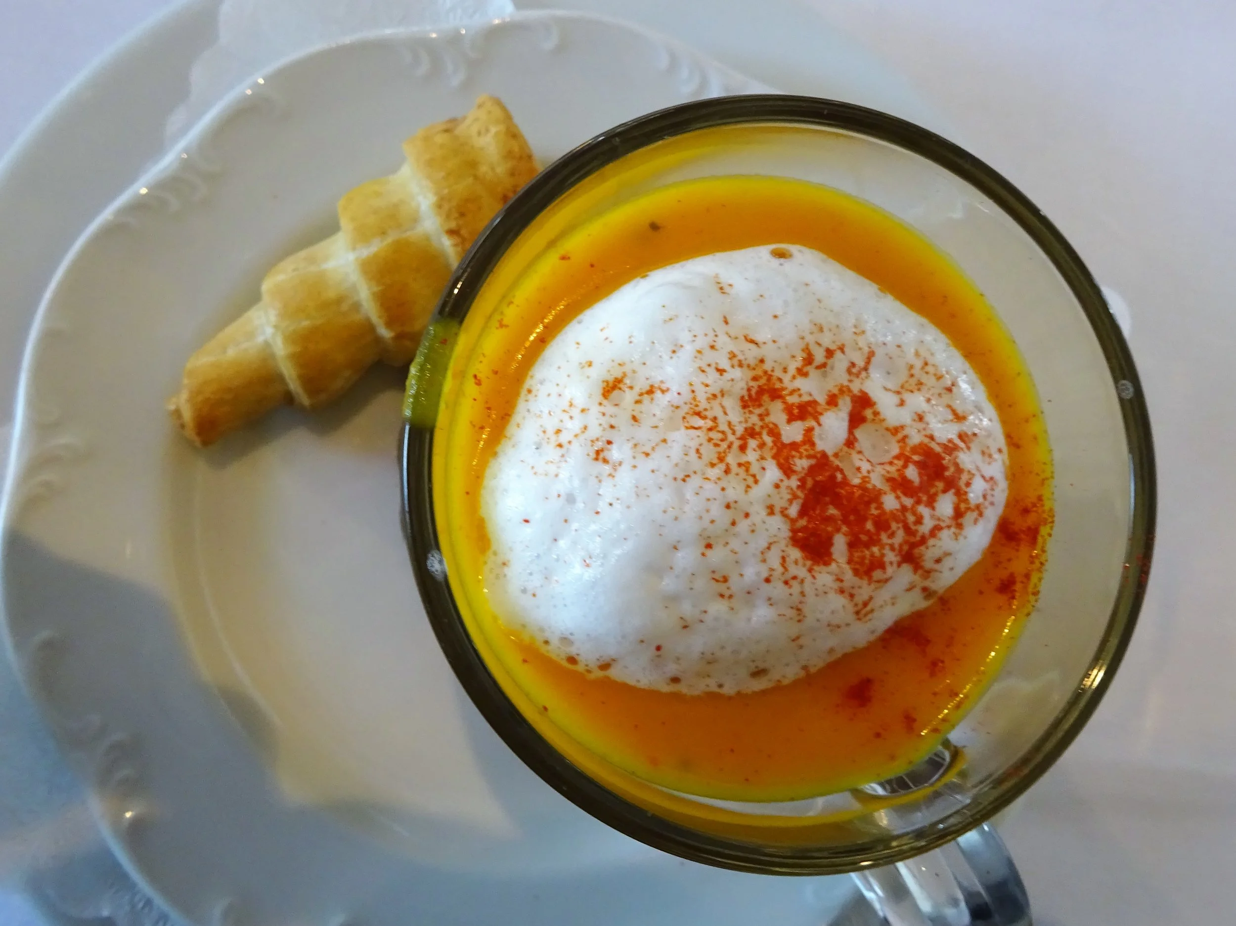 "Увертюра комической оперы" у нас выглядела так. Суп в чашке, вид сверху.