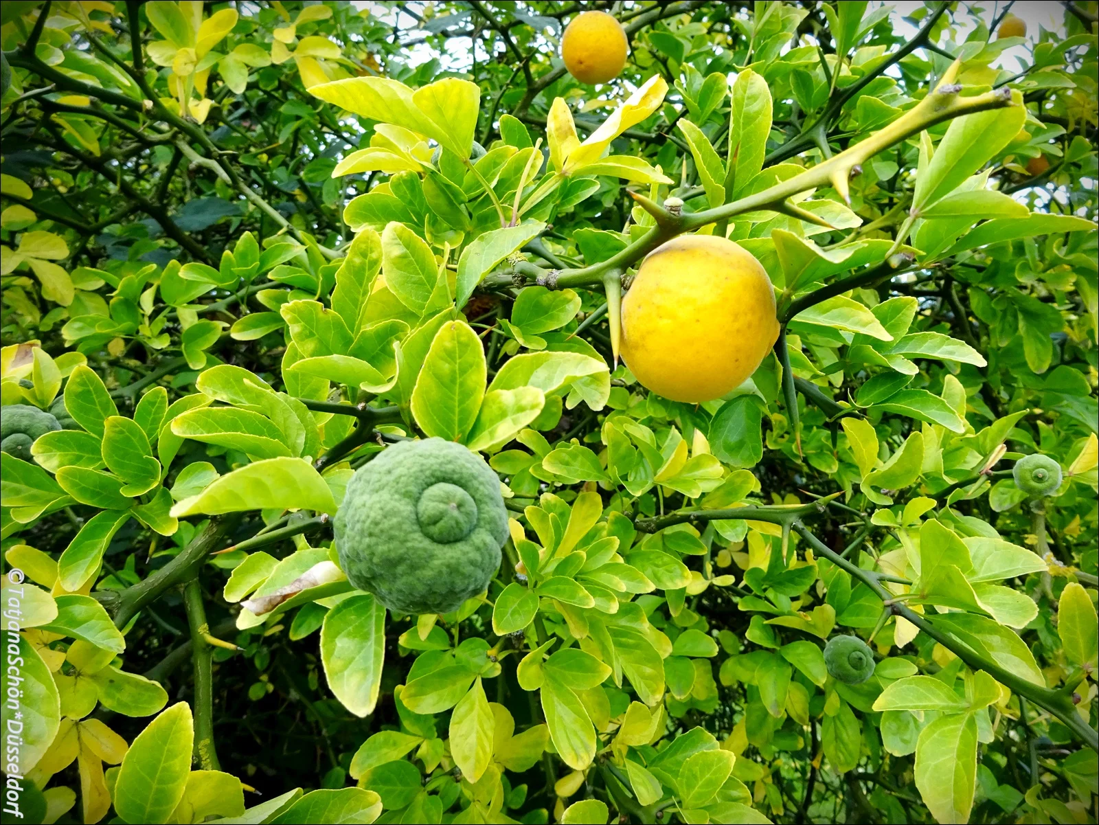 Как бы то ни было: «яблочки» эти золотые и корка их трудно отделяется от мякоти. Мякоть горько-кислая, несъедобная (говорит русская википедия). А в немецкой утверждают, что в средиземноморской кухне эти душистые «горькие апельсины» в мармеладах и приправах используют. Я же подумаю ещё, как употребить те 10 гесперидиев-апельсинчиков, которые я принесла домой (всёвдом!))