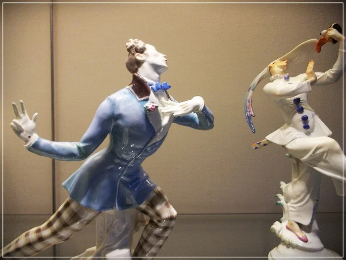 Трое из мейсеновского "Русского балета" у меня есть в серии фото-репортажей из Музея керамики в Дюссельдорфе. Прообразами для статуэток послужили персонажи того самого балета «Карнавал» на музыку Роберта Шумана, который труппа Сергея Дягелева в 1910 и 1912 годах привозила в Берлин.