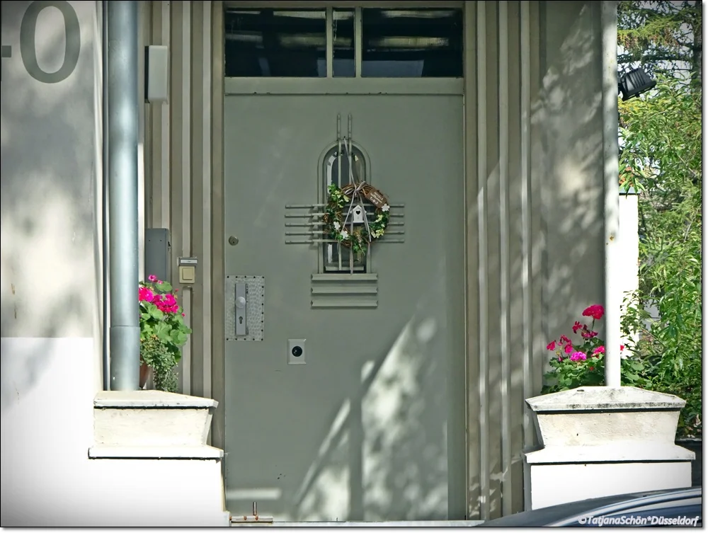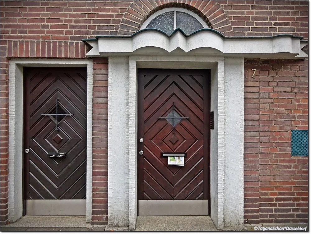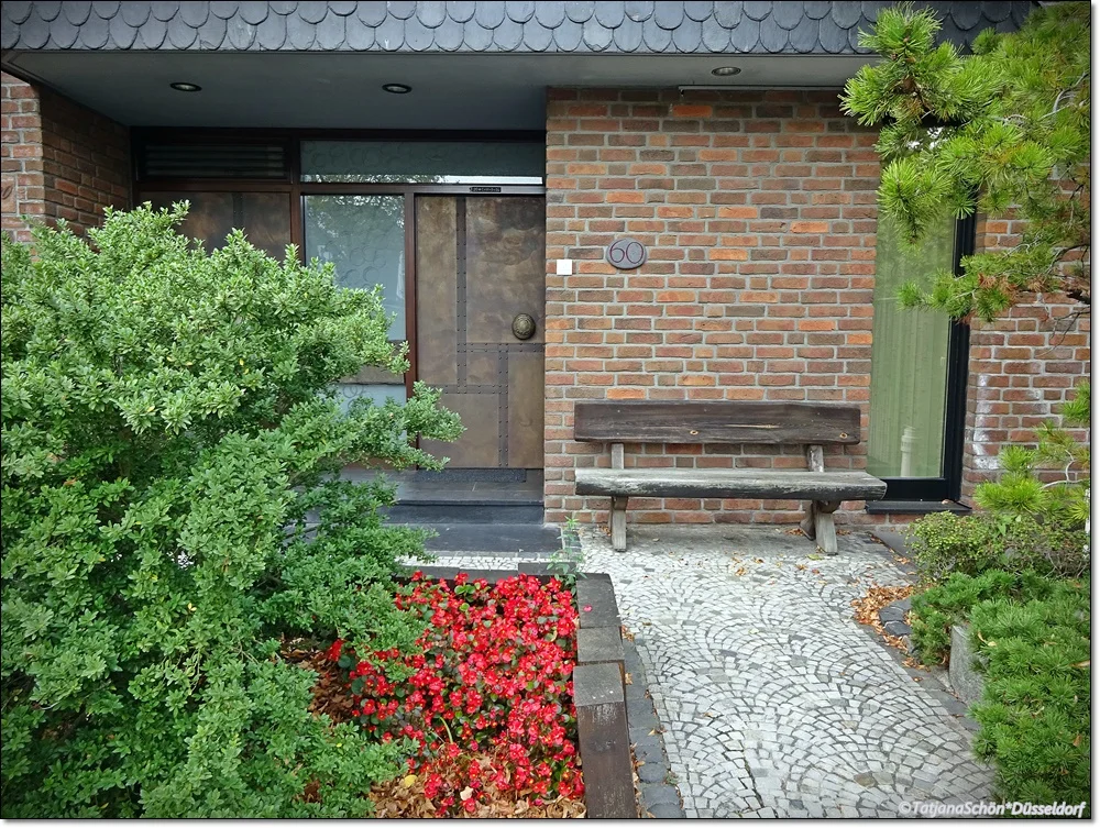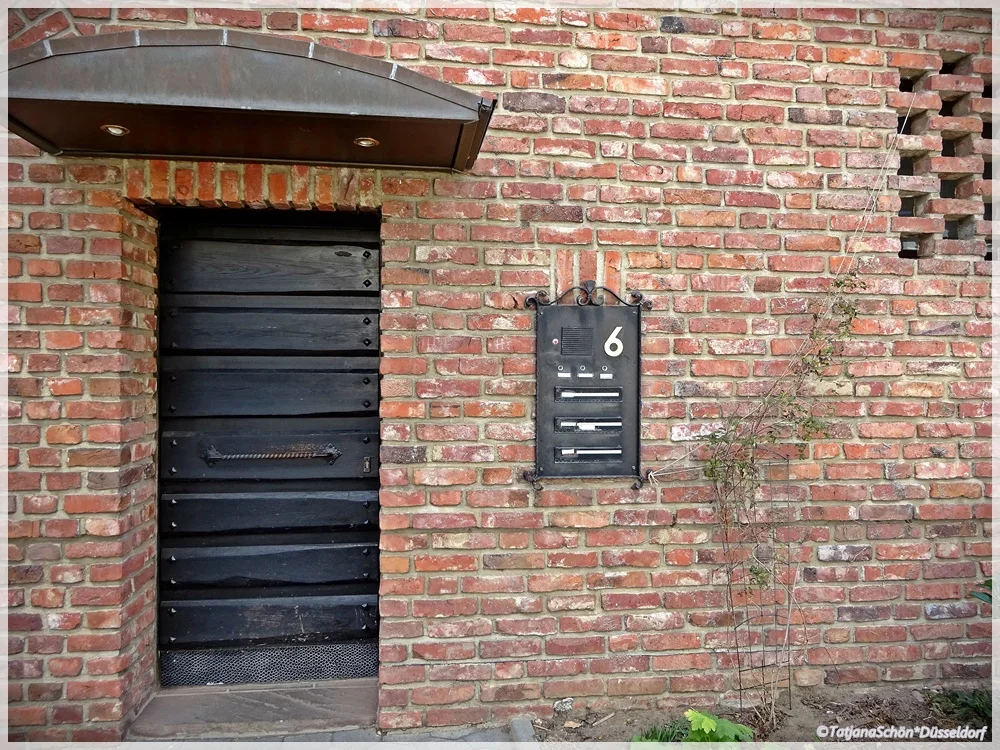 А вот "тесная парочка" в кирпичном (частном же) доме в Бенрате. И всё те же 30-е годы 20-го века. Ассиметрия навеса, вьющегося "лентой на ветру" очень симпатична!