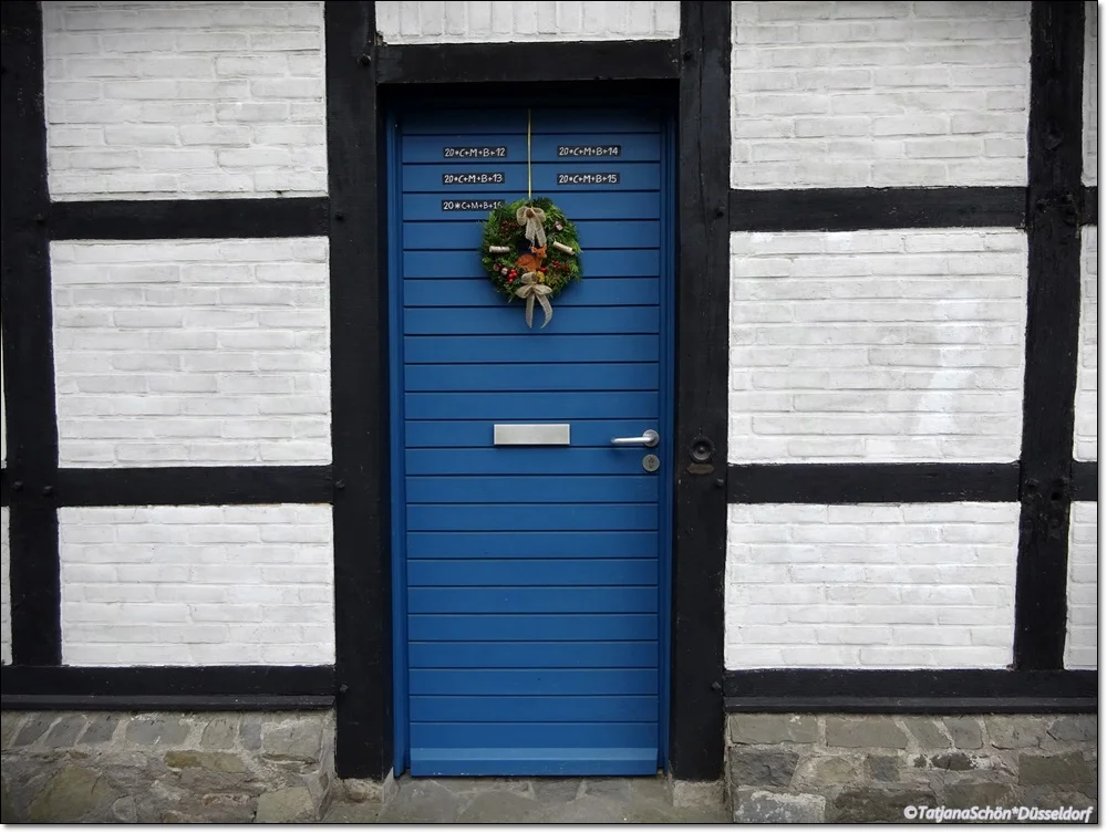 Фахверковая постройка в замке Хаус-цу-Хаус. Неожиданно синяя дверь (в этих краях они чаще всего зелёные!).
