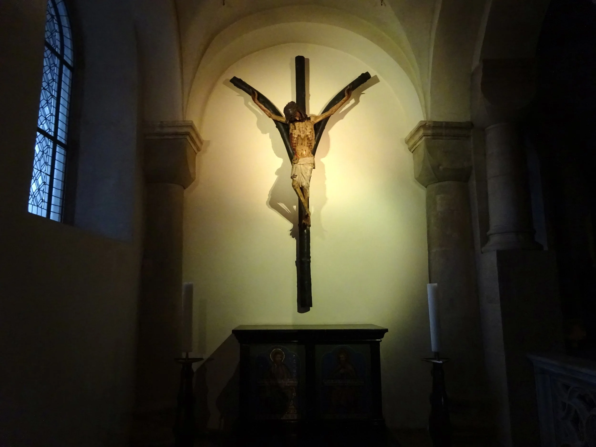 К 2010 церковь была отреставрирована и в ней установили стеклянное распятие дюссельдорфского художника Томаса Кесслера (Kesseler) с простым и выразительным рисунком чёрного цвета на бесцветном. А я как-то упустила его сфотографировать...