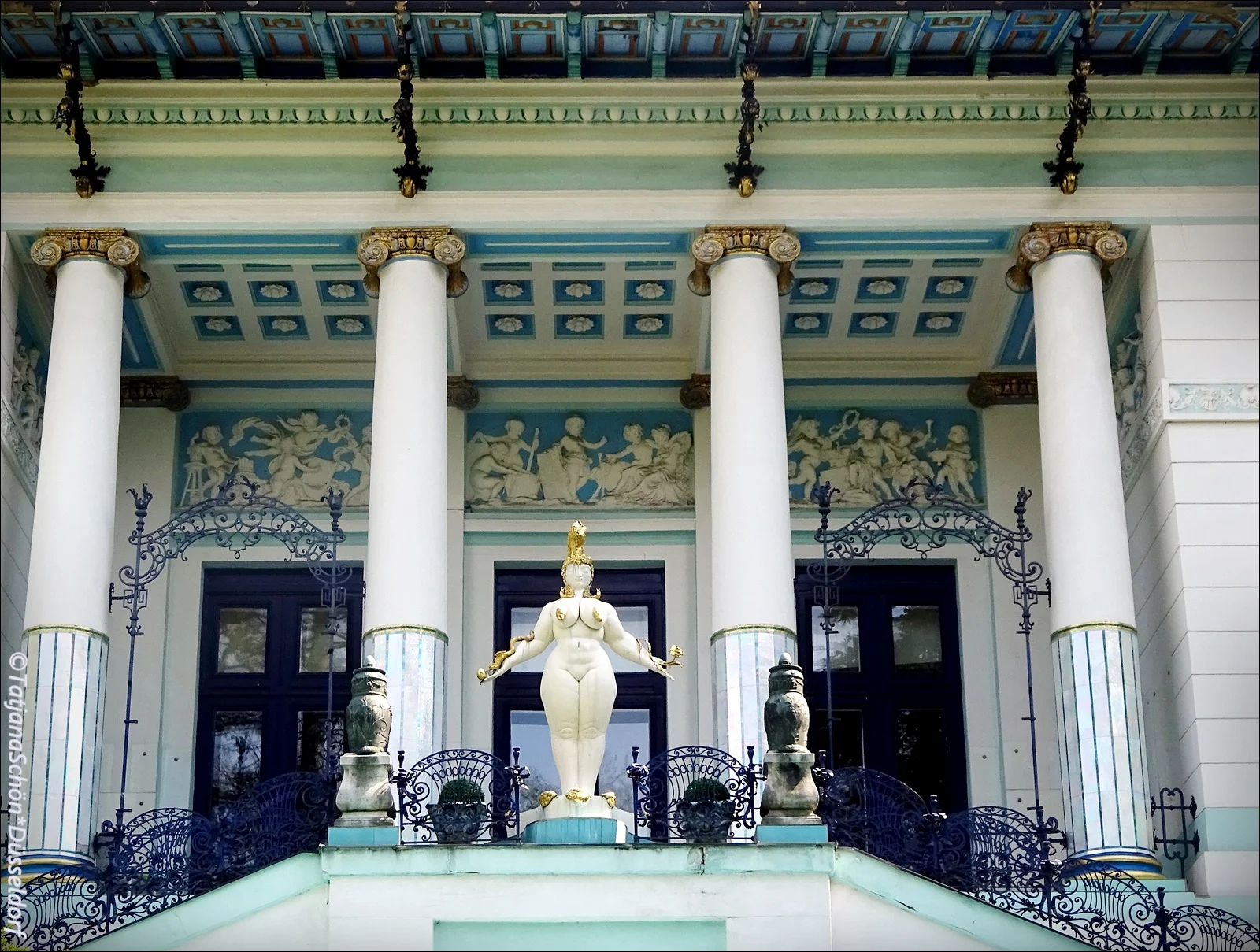 Представителями называют Э. Фукса, Р. Хауснера. Так вот, тот австрийский художник Эрнст Фукс (1930-2015), которого другие справочники называют представителем сюрреализма, жил одно время в вилле, построенной главным архитектором венского модерна и сецессиона, Отто Вагнером. В погожий (!) субботний апрельский день мы отправились, смотреть отто-вагнеровское наследие, но при этом приблизительно ознакомились с эрнсто-фуксовской архитектурой и скульптурой.
