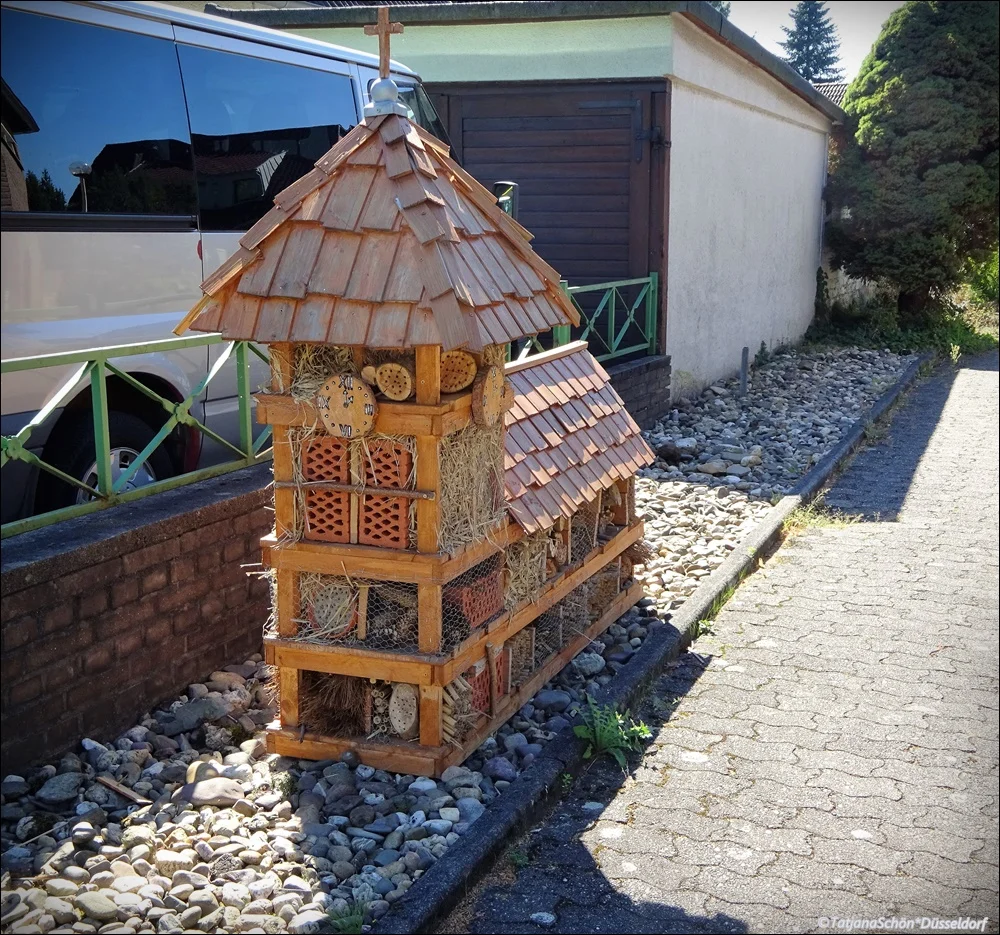 Это для насекомых построено. Но повторяет формой религиозное сооружение (новоапостольская церковь).