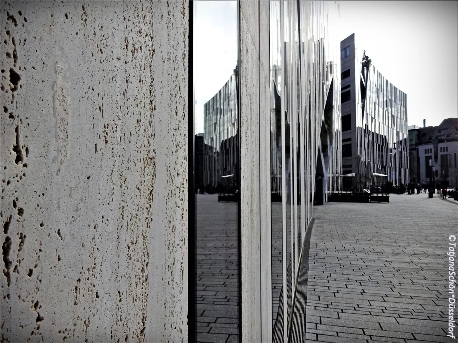 Так вот, в Дюссельдорфе этот римский травертин прекрасно скульптурно и мягко лёг в облицовку необыкновенно красивого современного здания, что для меня очень и очень ценно.